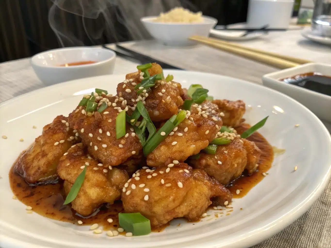 Sticky, crispy golden chicken tossed in a rich honey glaze—this comfort food classic blends Southern charm with Chinese-American roots. Perfect for family dinners or creative leftovers.