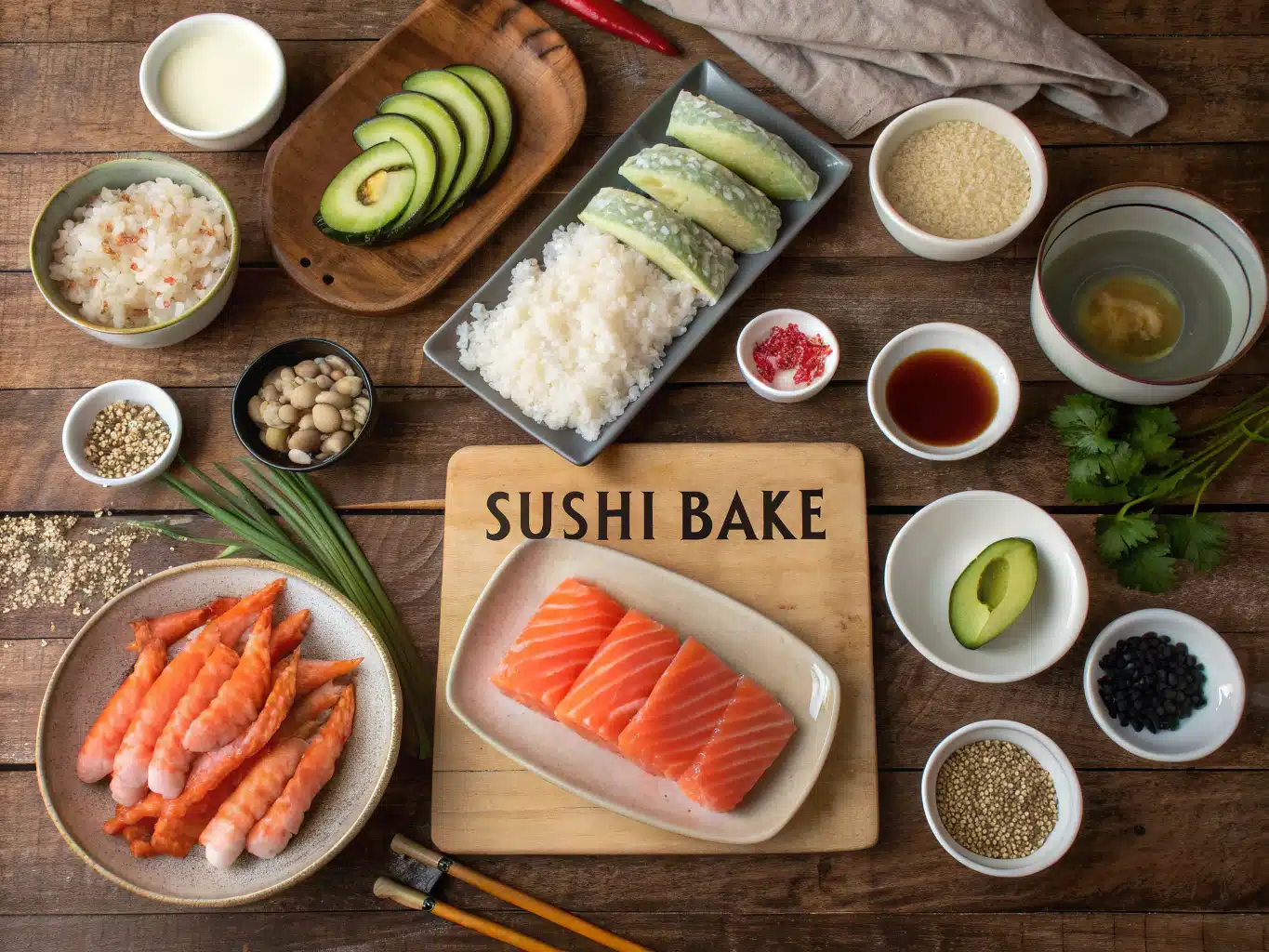 Forget complicated pantry runs—most of this you either already have or can find at any market. Here’s what I suggest for a creamy and flavorful SUSHI BAKE: