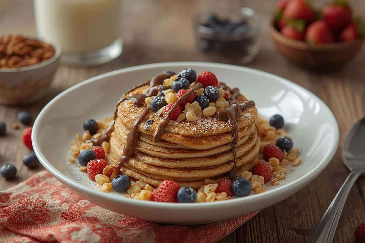Mini pancakes turned into a cereal-style breakfast that’s crispy, fun, and wildly customizable. Serve with syrup, fruit, or milk.