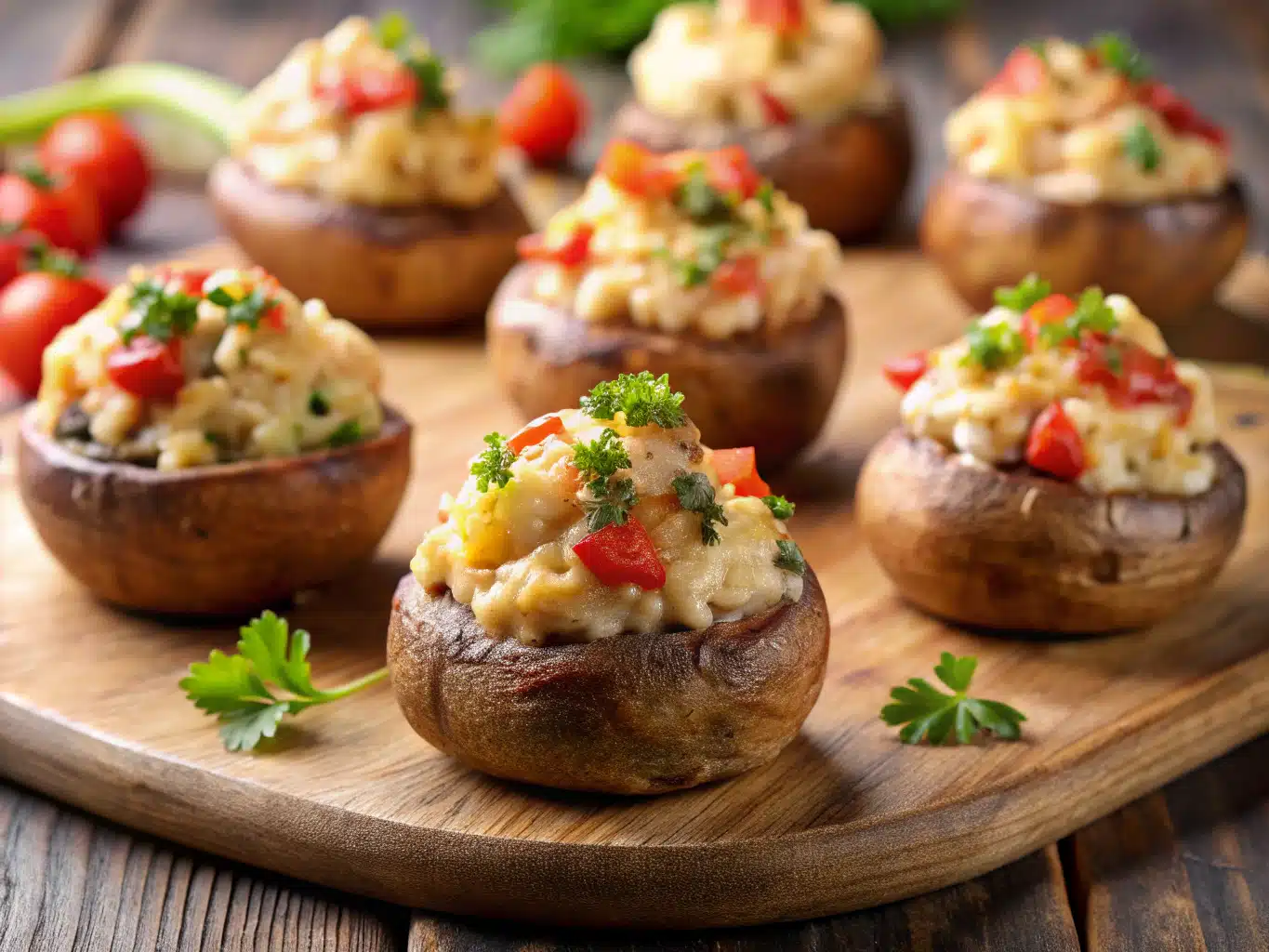 - Fill each mushroom cap generously with the crab mixture.