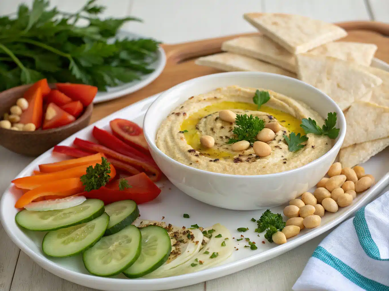 What I love most is the flexibility. One week it’s Mediterranean olives and cherry tomatoes, the next it’s roasted carrots and watermelon radish. A proper hummus platter reflects your pantry, your taste, and your story. Got kids? Add apple slices or pretzel sticks. Vegan guests? Toss in marinated tofu cubes. The possibilities are endless—and it always feels warm, welcoming, and fun.