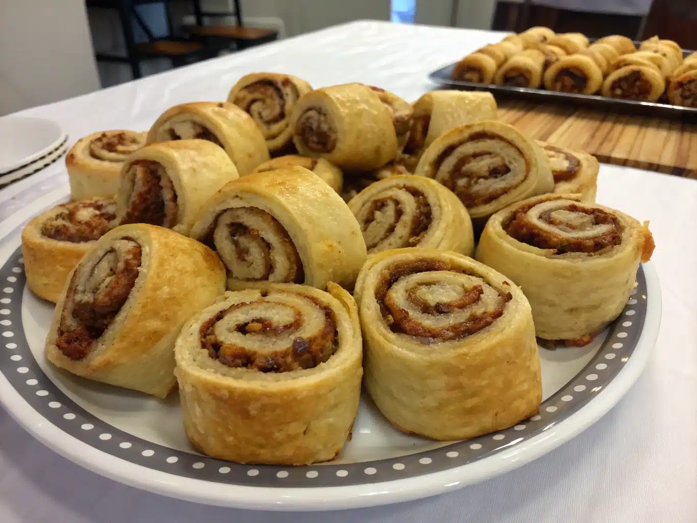 Sausage pinwheels are spiral pastries made by rolling sausage in dough (usually puff pastry or biscuit dough), slicing into rounds, and baking until golden. The result is a savory, flaky snack perfect for breakfast, brunch, or appetizers.