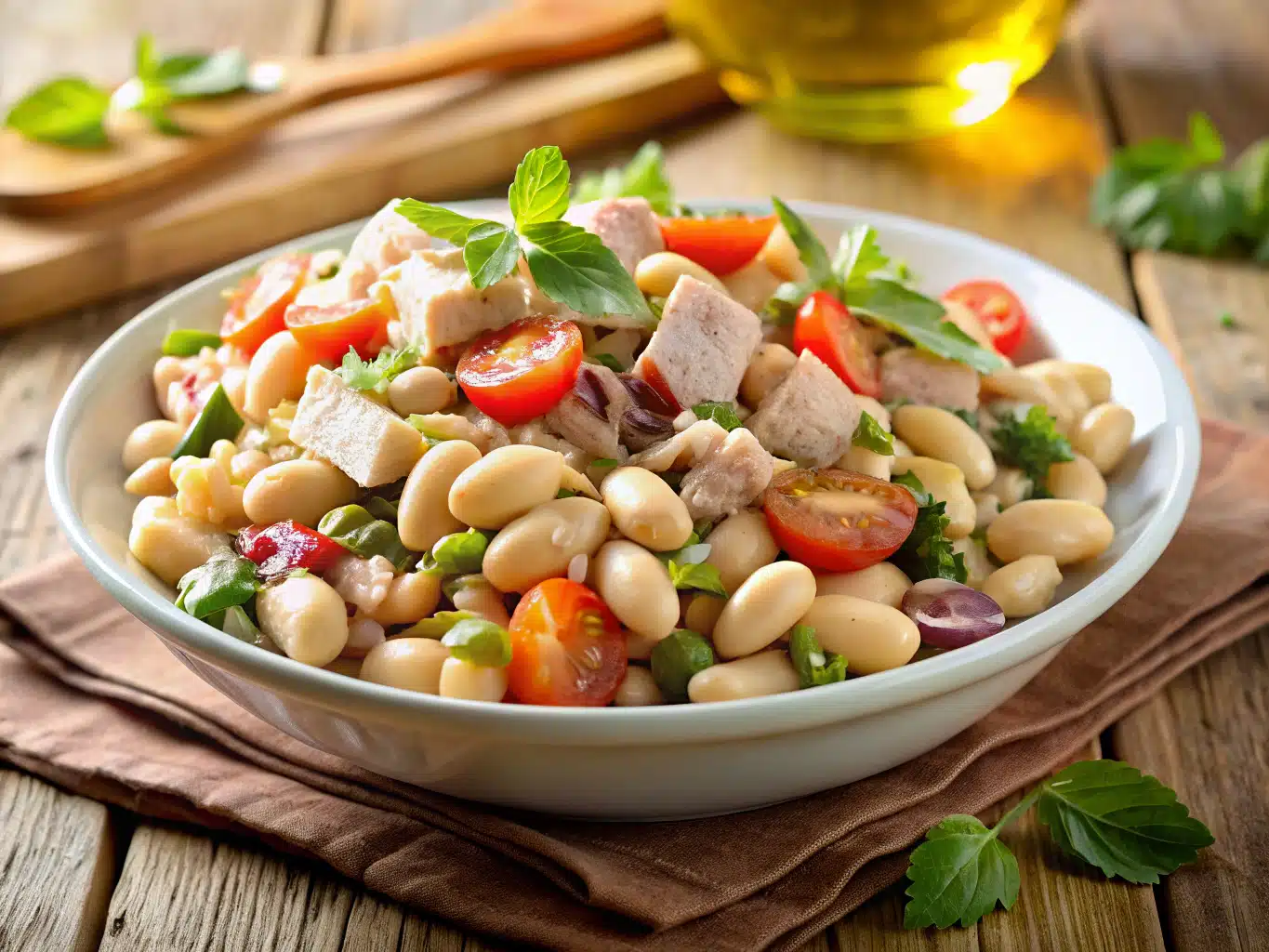 A hearty, protein-packed salad blending flaky tuna with creamy white beans, fresh herbs, lemon juice, and capers—perfect as a quick meal or make-ahead staple.