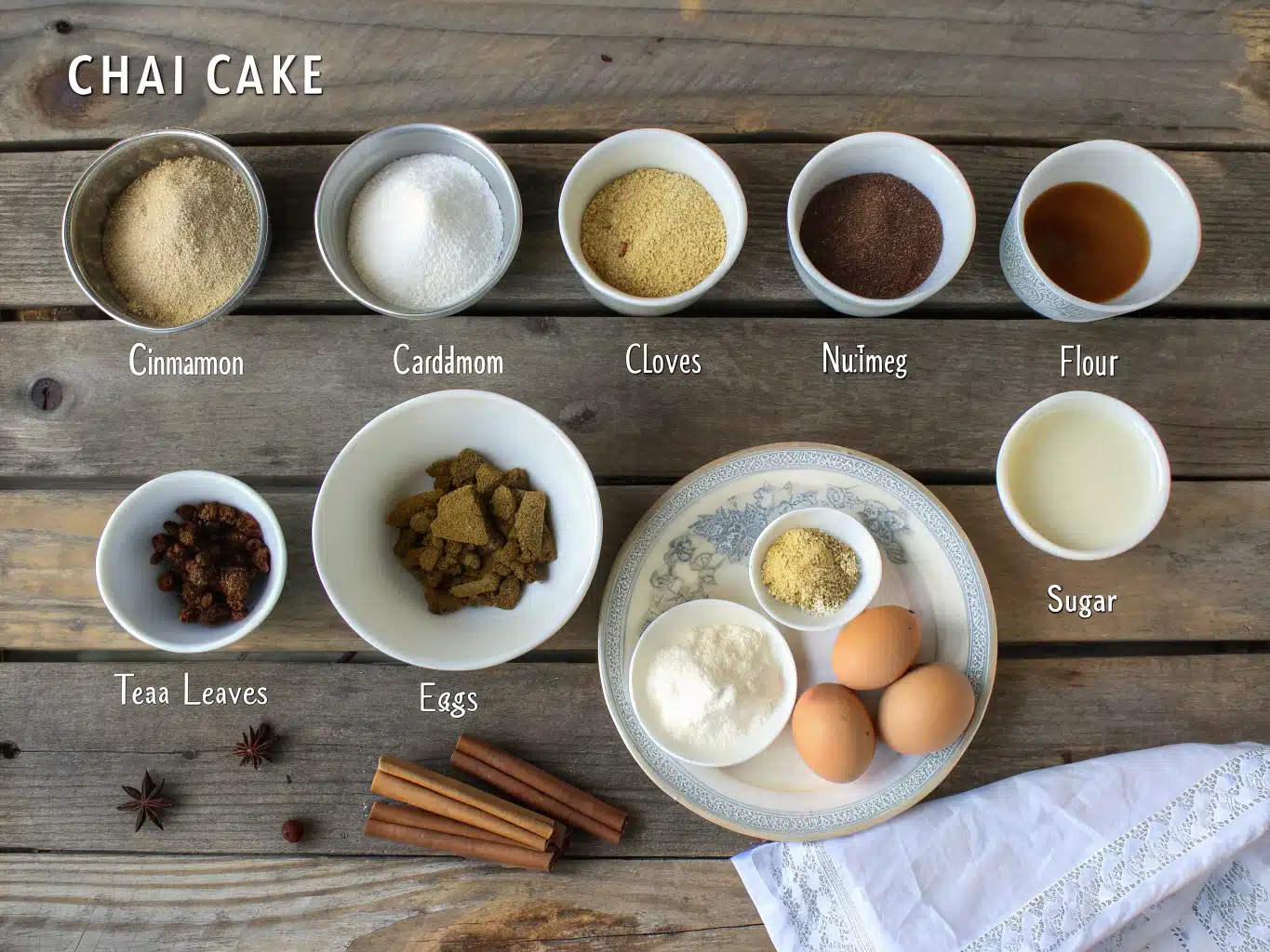 The most common chai cake spices include cinnamon, cardamom, ginger, cloves, and nutmeg. Some variations include black pepper or star anise for added depth.