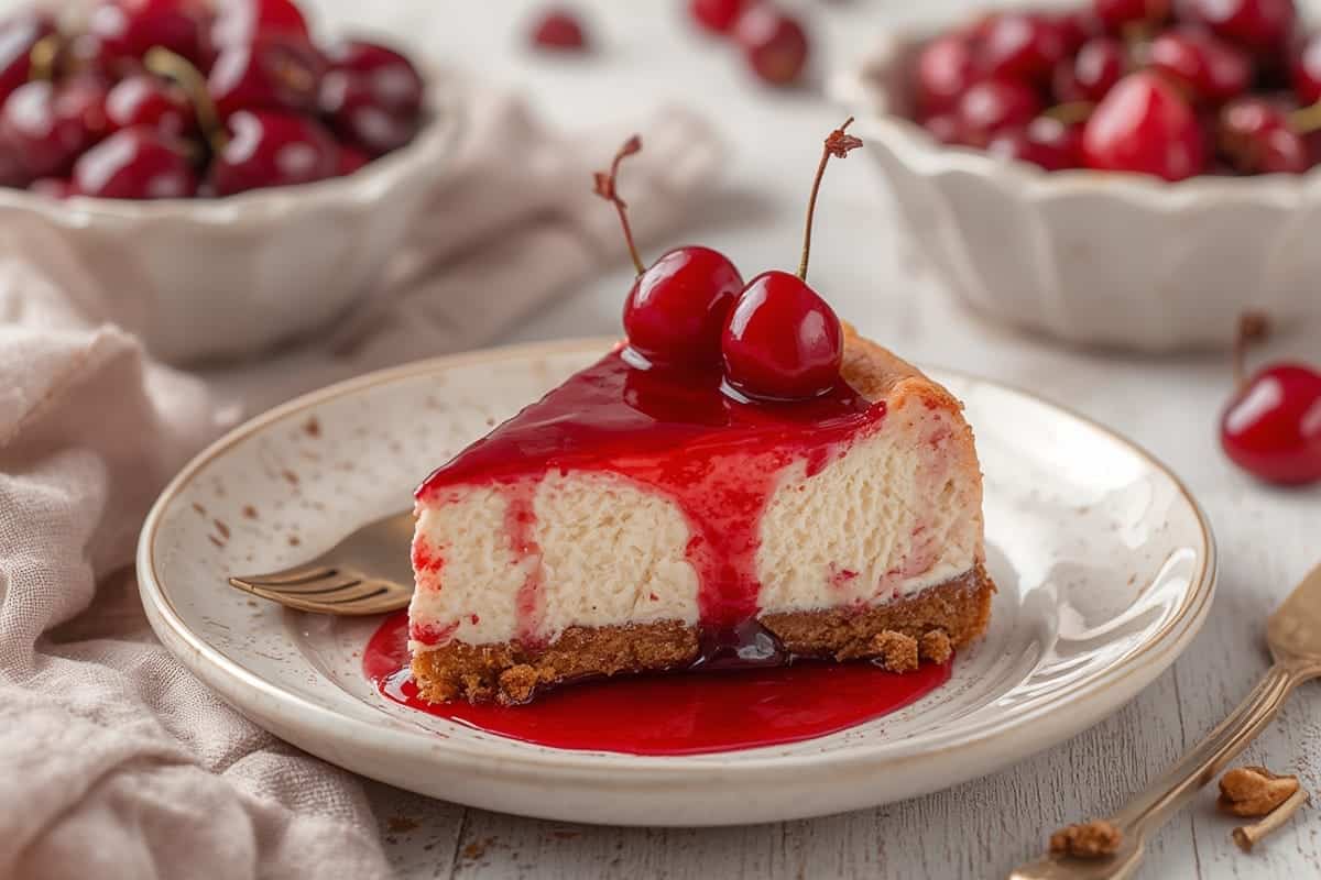 A rich, creamy baked cherry cheesecake with a graham cracker crust and glossy cherry topping. Perfect for holidays or any day you want something sweet and indulging.