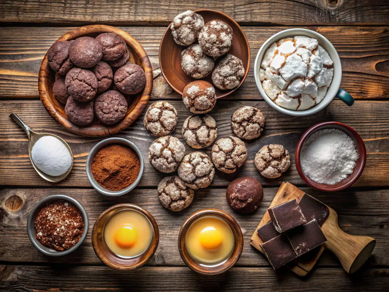 The secret to unbeatable chocolate crinkle cookies comes down to quality cocoa, balanced wet-and-dry ratios, and chilling the dough. Here’s what you’ll need: