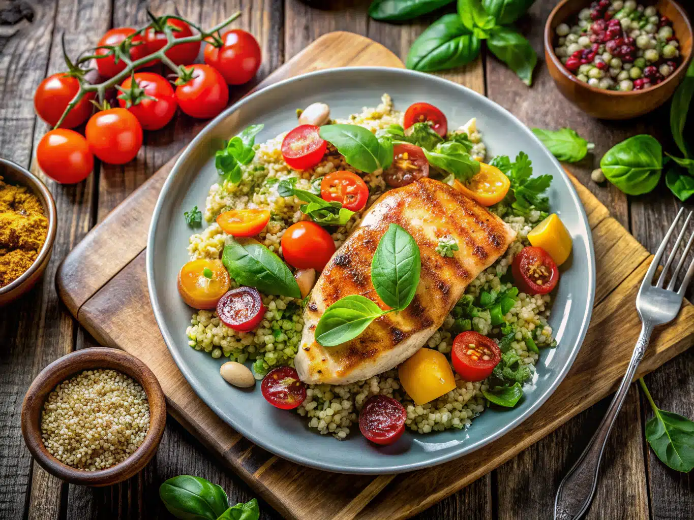 A healthy dinner includes lean protein (chicken, fish, tofu), a variety of colorful vegetables, and fiber-rich carbs like quinoa or sweet potatoes. A balanced plate not only boosts energy but keeps you full and satisfied.