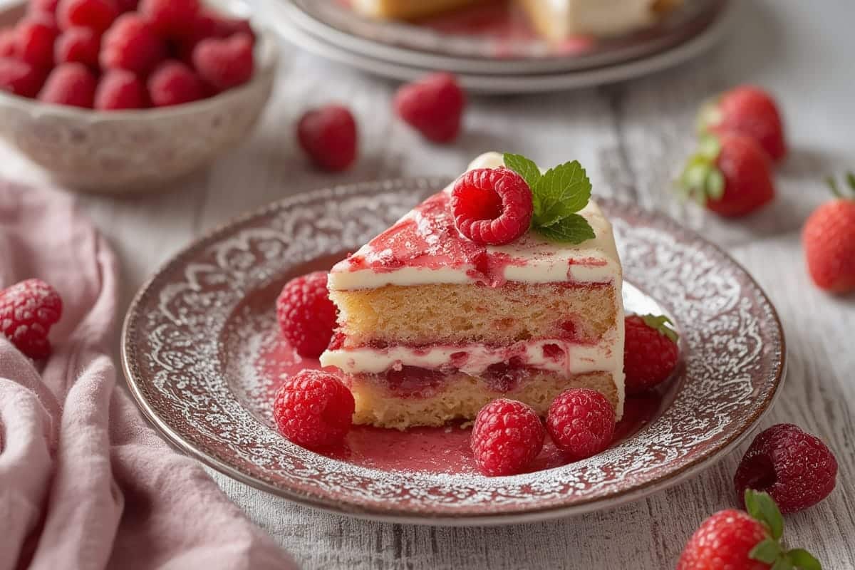 The biggest secret to a soft and fluffy raspberry cake lies in the mixing. Overmixing your batter activates too much gluten, which can make even the prettiest cake dense. Gently folding in the raspberries is crucial—work slowly and avoid smashing them so your cake stays visually beautiful and light in texture.