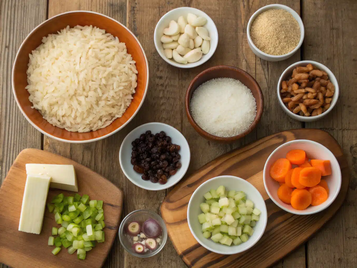 Rice pilaf typically includes long-grain rice, fat (like butter or olive oil), aromatics (onion and garlic), and flavorful liquid such as broth. Optional spices, herbs, or toasted nuts can boost flavor and texture.