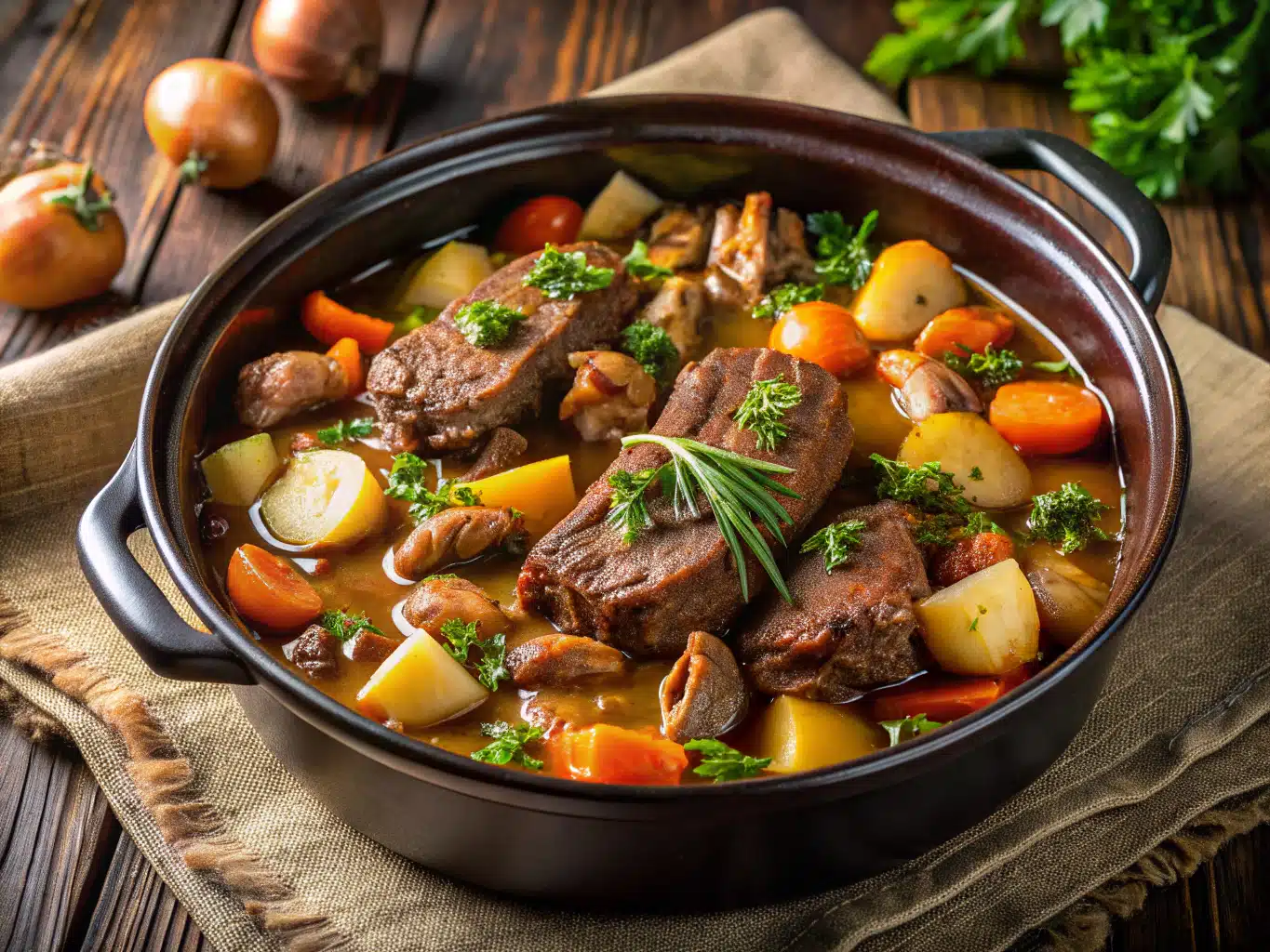 When I developed my own go-to version, I started ditching the pre-packaged soup mixes and leaned into natural umami: garlic, Worcestershire, fresh thyme. The longer it simmers, the deeper those flavors dig in. The beauty lies in how forgiving it is. Dry herbs work. Fresh onions or pearl onions – your call. Even the meat? We’ll explore that next.