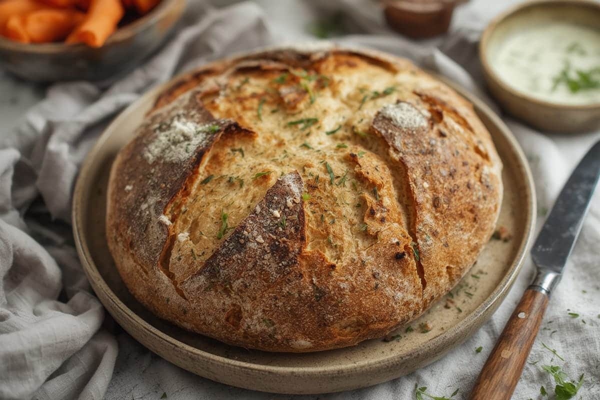 This article’s core recipe uses just flour, water, starter, and salt. Stretch-and-fold methods instead of kneading make it beginner-friendly without special equipment, though a Dutch oven helps a crisp crust.
