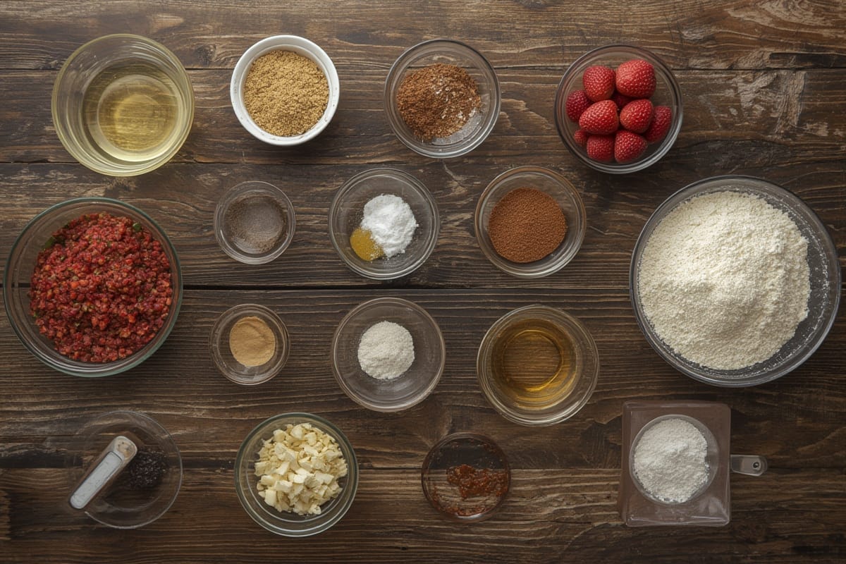 Let’s talk essentials. Every ingredient here plays a role in getting you moist, fluffy, tangy-sweet strawberry muffins that taste like they came from your favorite bakery.