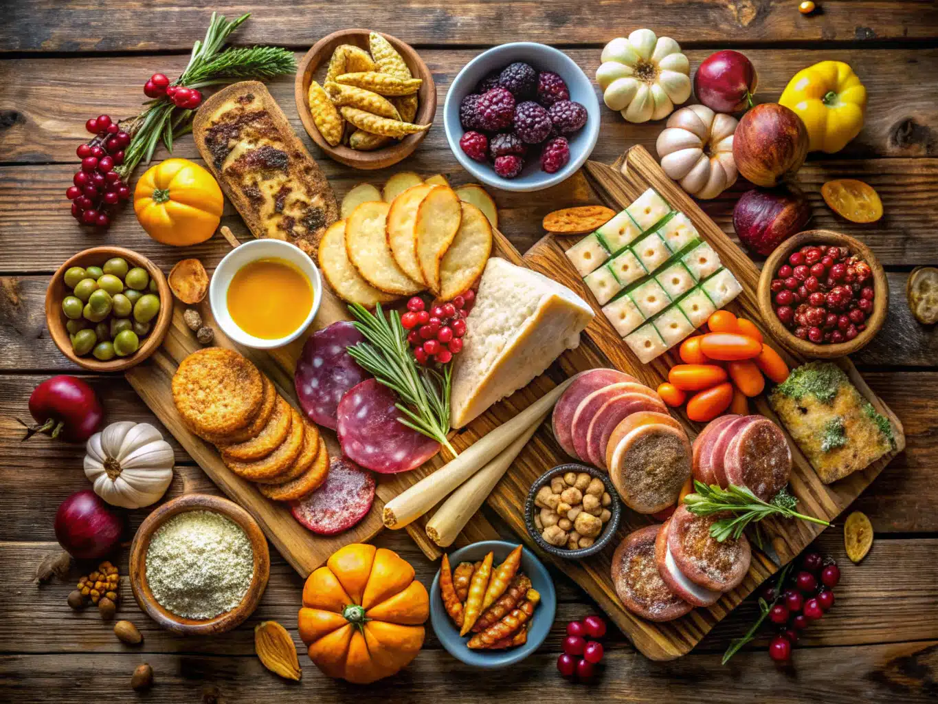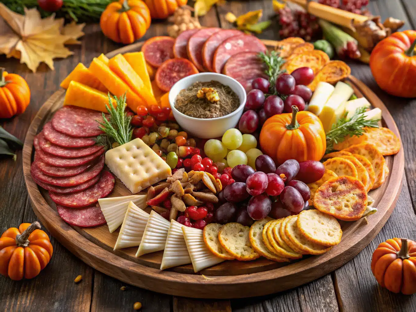 Your board should reflect the festive warmth of Thanksgiving—imagine rich colors, hearty textures, and bold seasonal flavors. Here’s what you need: