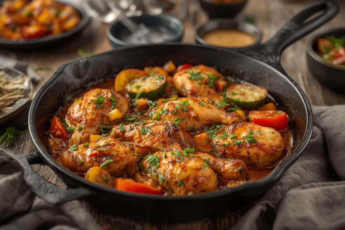 A quick and savory one-pan dinner ideal for busy evenings. Juicy chicken and roasted vegetables cooked together in a flavorful spice blend.